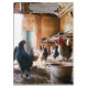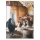 Featuring one proud rooster and all his hen friends. This graphic includes several chickens just hanging out in a country farm barn, with nothing much of anything on their minds.
