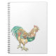 Notebook featuring a colorful, vintage-inspired rooster illustration. Artwork copyright: Dominic A. White. All rights reserved.