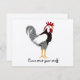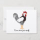 A black and white Wyandotte rooster illustration with yellow legs and red comb standing cocky and smart. An image for customized messages. Happy Birthday to Chinese astrology born 'year of the rooster', or Backyard chicken themes, or 'strut your stuff' invitations for parties and benefit events.
