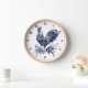 "Rooster" Blue Willow Style Square Kitchen Wall Clock. Introducing our beautiful kitchen wall clock, featuring a charming blue rooster with flowers on a white background. Inspired by the Willow Blue China Style color palette and style, this piece adds a touch of charm and elegance to any kitchen decor. To complete your kitchen ensemble, we offer coordinating products such as a cutting board, oven mitt, a wooden kitchen wall sign and pot holder set, as well as a coffee/tea mug. The best part? The wall art, coffee/tea mug, cutting board, and oven mitt can all be customized to your liking.