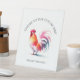 This bridal shower favor sign features a whimsical watercolor rooster in vibrant pink and orange hues, paired with the words "Cheers to the future Mrs. Please take one", adding the perfect touch to rustic wedding decor. Ideal for barn wedding themes, bridal showers and bachelorette parties. This versatile party favor sign adds warmth and style to any gathering. To find matching designs, visit www.zazzle.com/dotellabelle or message me for more options.