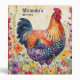 Rooster Chicken Watercolor Flowers Recipe Cookbook 3 Ring Binder