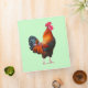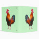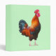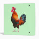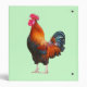 Photograph of colorful crowing rooster on front and back of binder. Customizable background color.