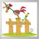 A rooster sitting on a fence crowing its lungs out. This design looks really effective on this Poster
