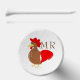 This rooster design monogrammed golf tee is a small peg, made of wood and is used used to elevate a golf ball slightly off the ground for the first stroke on a hole. Its purpose is to allow the golfer a cleaner strike and potentially greater distance and accuracy. Tees are inserted into the ground with the ball resting on top. Rooster design golf tee.