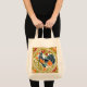 The printing came out very well, better than I had anticipated. The natural color fabric is sturdy with strong seams and comfortable handles. This tote fits easily over my shoulder. As it is filled, the bottom flattens out--very cool! I would buy this product again. This grocery tote holds a lot of groceries! The image quality was very good. The colors were a little darker than I had expected. The darkness may have been due to printing on a natural color fabric rather than on white. The cat design is attractively centered on the tote. The spirit of the design is very lively, just as it appears on the Zazzle website.