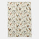 A off-white, light beige background decorated with a retro farmhouse style rooster and hen pattern.