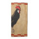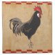 An rooster against a vintage tan background, surrounded by a red checkered border