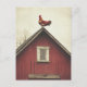A lively art piece of a rooster perched confidently on the roof of a red barn, embodying the spirited essence of country mornings.