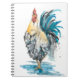 Rooster Splash II by Melissa Wang. Features a watercolor rooster in primarily blue and grey colors.
