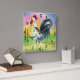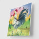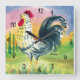 This charming watercolor painting of a rooster greeting the sunrise will enhance any room you put it in.