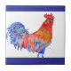 Rooster Watercolor Red Yellow Blue Chicken Ceramic Tile
