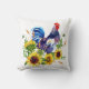 Rooster with Sunflower Watercolor Art Throw Pillow