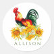 Rooster with Sunflowers Personalized Classic Round Sticker