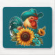 Rooster With Teal Hat and Sunflowers Mouse Pad