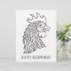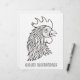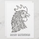 Coloring book page. Line art illustration of rooster's head. Custom text.