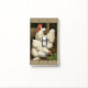 A rustic art print displaying a vigorous rooster and a hen in a hen house. The darc ecru border is pattern consists of spiral elements. This print would be a gread addition to a rural country home decoration.