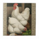 A rustic art print displaying a vigorous rooster and a hen in a hen house. The darc ecru border is pattern consists of spiral elements. This print would be a gread addition to a rural country home decoration.