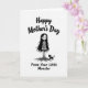 This design shows a tall, vertical illustration on a bright white background, centered on a slim young figure with long black hair falling around her face and wide, curious eyes that soften into a small, affectionate smile ❤️. She wears a simple striped tunic, and from the waist down her form shifts into twisting, dark root shapes that spread like a protective cradle beneath her. Perched close on one of the roots is a small black cat, leaning in as if keeping her company, adding a quiet note of friendship in their shared stillness. The cat’s only strong color is its glowing green eyes, which stand out sharply against the black-and-white scene like a secret between them. At the top, the words “Happy Mother’s Day” sit in dark lettering, arcing slightly above the figure to frame her head. Near the bottom, “From Your Little Monster” appears in matching dark text, tucked below the roots with a cheeky, affectionate tone 🌼. Fine black lines define the hair, stripes, and root details, while the cat’s emerald eyes remain the single bright accent.