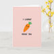 This design shows a personified orange root vegetable centered on a soft blush-pink background, giving the scene a gentle, friendly tone 🌷. The character has a tapered shape with tiny black dot eyes and a small curved smile that reads like a shy, affectionate grin. Three simple green leaves sit on top like a leafy tuft of hair, adding a fresh contrast to the warm orange body. A few short, faint horizontal lines across the vegetable add light texture, like soft ridges catching the light. Around the character, thick hand-drawn lettering in deep charcoal forms a sweet message that wraps the figure in a cozy, romantic way 🐰. The text sits mostly above and to the sides, with the central character visually acting as part of the phrase. The spacing feels open and uncluttered, letting the vegetable’s tender expression do most of the talking. The blush background stays smooth and even, with no extra objects, borders, or patterns.