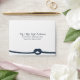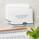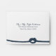 Nautical rope knot and anchor envelope for larger size 4.25 x 5.5 RSVP card with navy blue and white stripes inside to compliment matching wedding invitation set. Personalize return address on front and back flap.