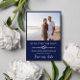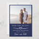 Nautical wedding tying the knot save the date with a heart rope in white on navy blue. Add two photos, one on either side. Double sided nautical tying the knot wedding save the date personalized with photos.