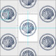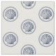 A piece of fabric featuring a unique navy and white pattern showing a roped vintage seashell illustration.