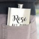 A fun "Rose All Day" flask featuring playful black script with a sweet rose gold heart accent on a sleek silver background. The cheeky wine-lover phrase makes this a hilarious gift for bachelorette parties, girls' weekends, birthdays, or any rosé enthusiast. A stylish conversation starter for any celebration.
