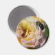 Bumble bee flying into a delicate pink rose flower nature photography by Susan refrigerator magnet. You can personalize this magnet with any text you like by clicking on Customize. This image is available on many products in my gallery.