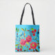 Rose and Cherry Blossom Bright Blue Tote Bag