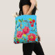 Cheerful rose and cherry floral pattern on your choice of lovely tote bag. A very fresh and summery design. Available in your choice of strap options. Customizable in your choice of background color on both front and back (This item shown in vibrant sky blue). A bright and original floral addition to your day. Sweet.