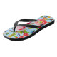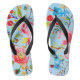 Cheerful rose and cherry floral pattern on a lovely pair of summery blue flip-flops. Customizable in your choice of background color.