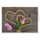 Pair of rope hearts with pink rose bud and loose petals. Can be used for wedding anniversary for spouse or couple or any romantic event.