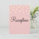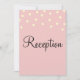 Soft pastel wedding reception cards with rose pink background and black text with cream polka dots. Personalize backside with Wedding details. Insert Monogrammed initial in pastel blue. Original Design by TamiraZDesigns.