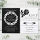 Rose border black white wedding Save the Date postcard. A beautiful rose border along with a white circle that holds your wording adorns this lovely postcard.