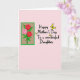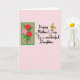 Designed with a soft pale pink background, this card balances a floral picture on the left with a message on the right for a gentle, affectionate look ❤️. On the left, a scalloped emerald-green frame like a decorative stamp holds a muted sepia panel featuring a bouquet of three roses. Two roses are deep crimson and one is blush pink, with layered petals and green leaves that lean toward each other like close friends sharing space. On the right, dark flowing lettering reads as a warm note for a “wonderful Daughter,” placed centrally with comfortable spacing so it feels like it’s being spoken directly. The text color is a deep charcoal-black that stands out clearly against the pale background without feeling harsh. Around the words, three small butter-yellow winged insects float as if circling the message, adding a light, caring touch 🌼. The insects sit near the top and mid-right of the lettering, and the scalloped green frame remains anchored on the left with the roses facing inward.