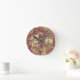Rose camouflage pattern on tiled wall background round clock