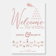 Welcome your guests to the upcoming rosé champagne theme nuptials with this exquisite Rose Gold Champagne Tower Wedding Welcome and Timeline Sign. You can personalize it with your wedding day details, photo and couple's monogram (on the back). This elegant wedding welcome sign and wedding timeline features an elegant rosé sparkling champagne tower, a beautiful rose gold script calligraphy "Welcome to our wedding" and a photo of the couple with an elegant couple's monogram on the back, so you can keep the sign on display in your living room for years to come.