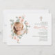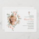 A lovely white invitation with a crescent of light pink roses gracing a circular photo window. The featured cross can be dragged to any location, made large or smaller or eliminated. (<a href='http://www.freepik.com/free-vector/wedding-invitation-with-floral-circle_1343276.htm'>Designed by Freepik</a>). <br/><br/>The card is easy to customize with your wording, font andfont color.<br/><br/>Not exactly what you're looking for? All our products can be custom designed to meet your needs at no extra charge.<br/><br/>Simply contact us at askcottonlamb@gmail.com.<br/><br/>Coordinating products available: Pink Rose Frame Thank You Cards<br/>Want something more? Just ask us!