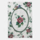 This Rose Cross Stitch Kitchen Towel features Pink Roses with a digital art cross stitch look on a rose floral background for a Shabby Chic look.