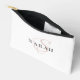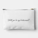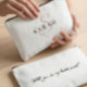 This cute personalized bridesmaid name cosmetic pouch features personalized bridesmaid's name, calligraphy monogram in light pink color, and custom message at the back side of the pouch. Change background and fonts colors easily if you like.