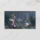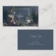 Define your brand with the ethereal romance and timeless artistry of a hidden garden using this captivating business card. The design features an atmospheric misty mountain landscape set against a dark, nocturnal sky. Towering pine trees frame a deep valley, creating a mysterious, tranquil scene. The foreground is lavishly framed by an abundant, layered garden of vintage-style roses and wild florals in a sophisticated palette of soft blush pink, creamy white, and deep purple. A delicate, intricate metallic gold rectangular frame sits centrally, elegantly intertwining with the foliage to highlight the serene landscape and provide a refined space for your key information. This artwork beautifully merges the stillness of a classical painting with rich, romantic botanical detail, resulting in a powerful and truly unique brand statement. This business card is ideally suited for a luxury event stylist specializing in romantic, twilight-themed celebrations, a boutique hotelier wanting to convey a picturesque, tranquil setting, or a vintage fashion curator whose collection is inspired by dark, rich romance. It would also perfectly suit a fine art print seller specializing in atmospheric landscapes, or a bespoke stationery designer focused on classic, detailed paper goods.