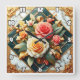 A detailed floral artwork features roses in soft hues, surrounded by intricate gold and green elements, showcasing a sophisticated decorative style.