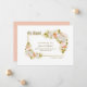 An elegant floral blush pink elopement announcement card featuring white, blush pink and soft apricot blooms on a gold frame. Text is easily customizable for you to include your own details.