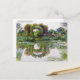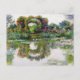 A fine art postcard with the painting, Rose Flowered Arches, Giverny (c. 1913) by Claude Monet (1840-1926). A French Impressionist artist. A still life of a flower garden with an arch of red roses next to a pond with pink water lilies in the foreground.