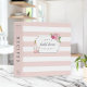 Collect recipes for the bride to be and organize them in this pretty floral binder with tons of personalization options! Chic binder features blush pink and white stripes accented with pink and ivory roses and a bottle of rosé wine with the couple's initials inscribed. Customize the front with the bride to be's name and shower date, and add customization to the spine using the fields provided. Designed to match our Rosé Garden bridal shower collection.