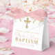 A simple and delicate favor box for your little girl's baptism with watercolor pink floral blooms, roses, and a gold cross. Easily change the information for any event. Great for favors, trinkets, or other party keepsakes.