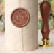 Before the wax hardens, gently and evenly press the wax seal stamp into the melted wax, ensuring it's centered.