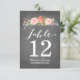 Table Number Card. Great for Weddings or any occasion. This card features lovely watercolored flowers and a mix of modern typography, all on a trendy chalkboard background.