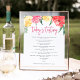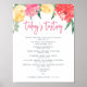 Charming floral wine tasting menu sign displays your wine selections adorned with vibrantly colored watercolor flowers in pink, red and yellow. Designed to match our